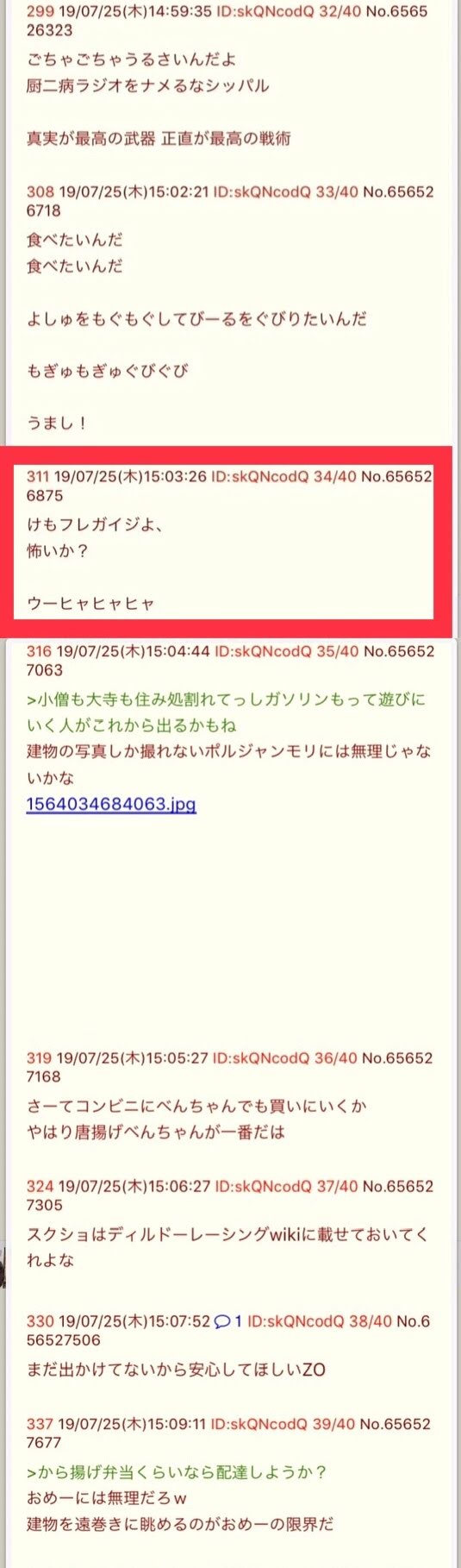 | … | 305無念Nameとしあき26/04/16(木)03:57:10No.1401183722そうだねx1>この無言のスクショペタペタがスレ豚のなりすましだったとして |