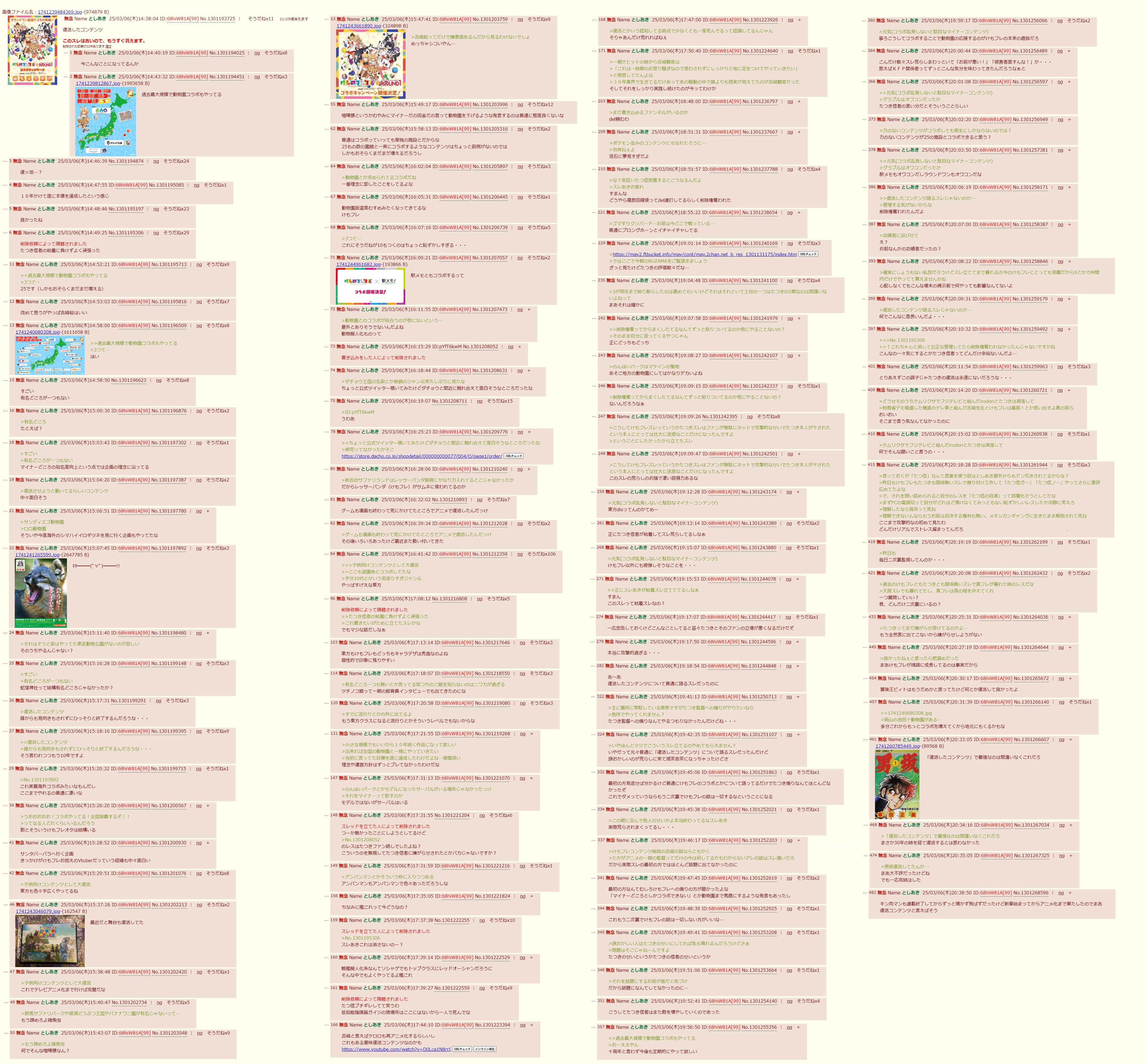 | … | 361無念Nameとしあき26/04/16(木)05:02:51No.1401186505そうだねx1たつきに粘着するなと言ってる連中が |