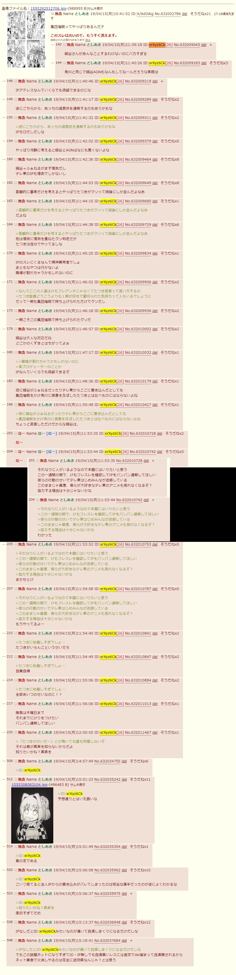 | … | 320無念Nameとしあき26/04/16(木)04:10:11No.1401184354+>これで黙ってんだからID出た途端赤っ恥かいて悔しい気持ちになりながらもスレをずっと見てるのは間違いないのよな |