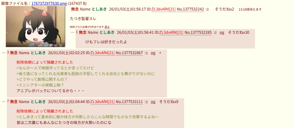 | … | 44無念Nameとしあき26/04/16(木)00:31:03No.1401165112そうだねx1>脚本料未払い問題は結局どうなったんだろう |