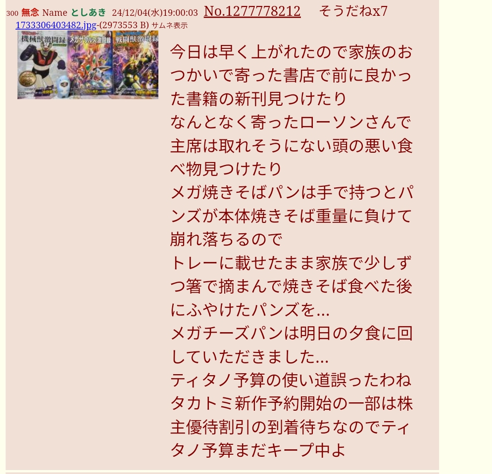 | … | 17無念Nameとしあき26/04/16(木)13:30:42No.1401247229+統失がよくTFスレガーって喚いてたけどトランスフォーマーのことかよ |