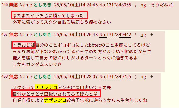| … | 40無念Nameとしあき26/04/16(木)14:17:10No.1401255158そうだねx2>>こんなログ送られて相手も困るだろうってことが考えられないのが統失だよなぁ |