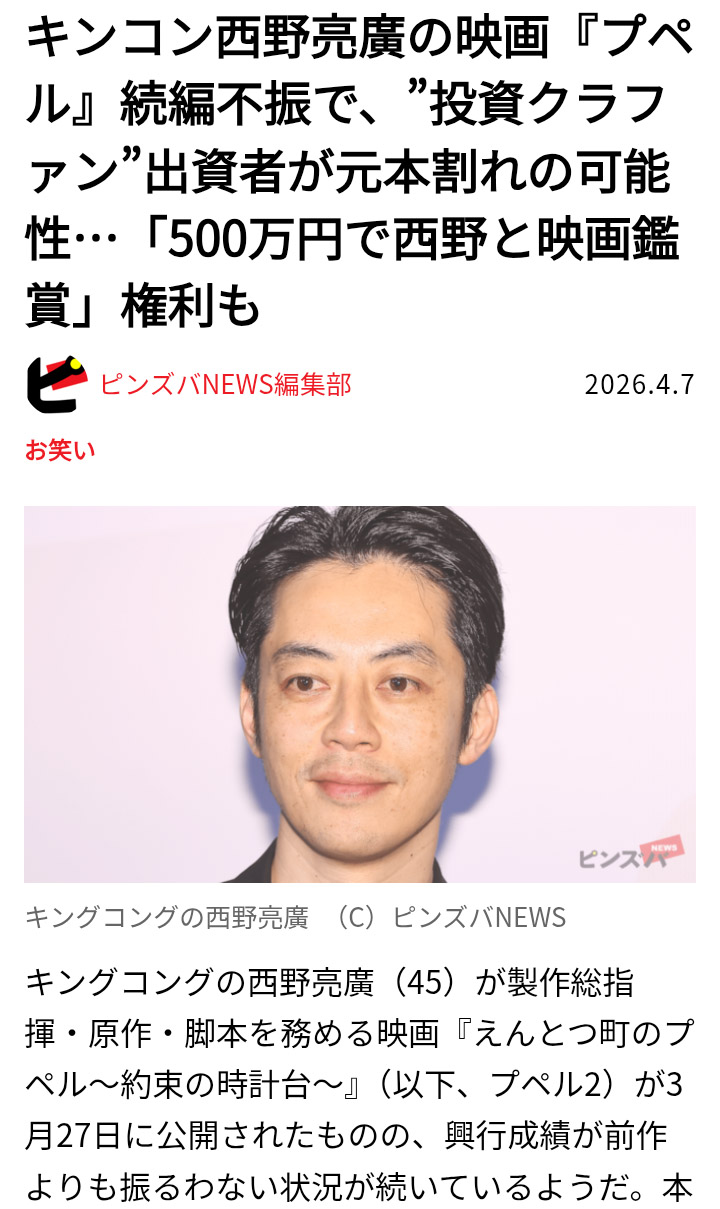 | … | 24無念Nameとしあき26/04/16(木)15:21:20No.1401265027+>西野じゃなくて吉本の力がすごかっただけの証明 |