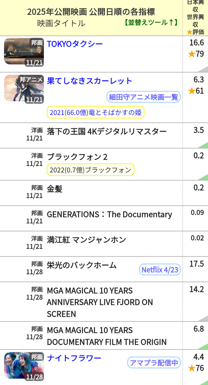 | … | 131無念Nameとしあき26/04/16(木)18:17:07No.1401293951+[順位] [販売数] [映画作品タイトル名] |