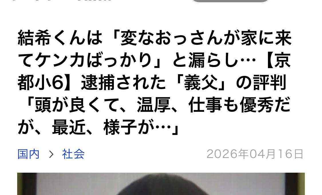 | … | 56無念Nameとしあき26/04/16(木)19:38:50No.1401314068そうだねx4>再婚からたった三ヶ月で相手の連れ子を殺し殺人犯に |
