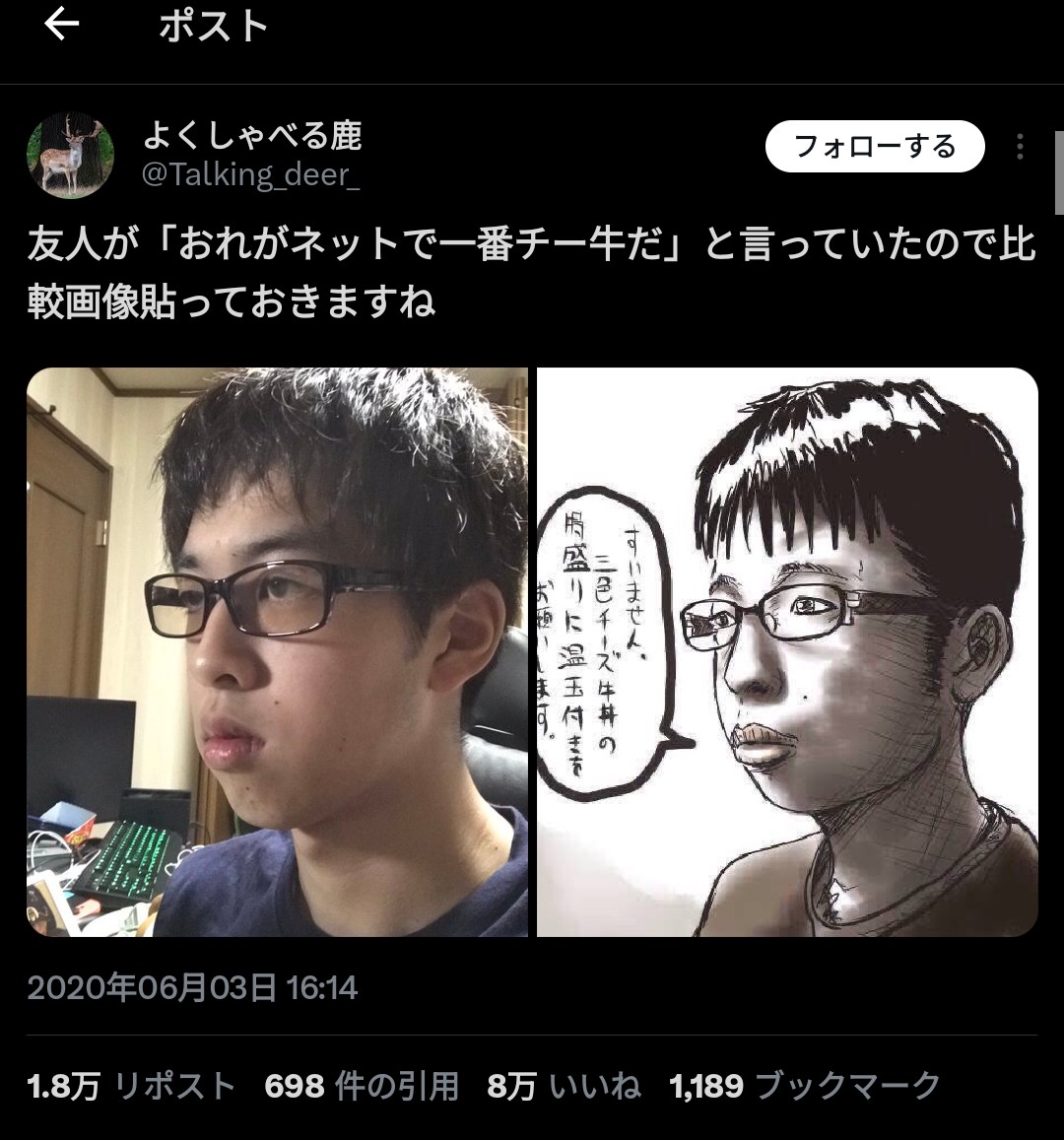 | … | 112無念Nameとしあき26/04/16(木)22:02:22No.1401354656+チー牛はあの画像が万人の共通認識の中にあった「なんかキモい冴えないやつ」に名称を与えたってのがデカい |