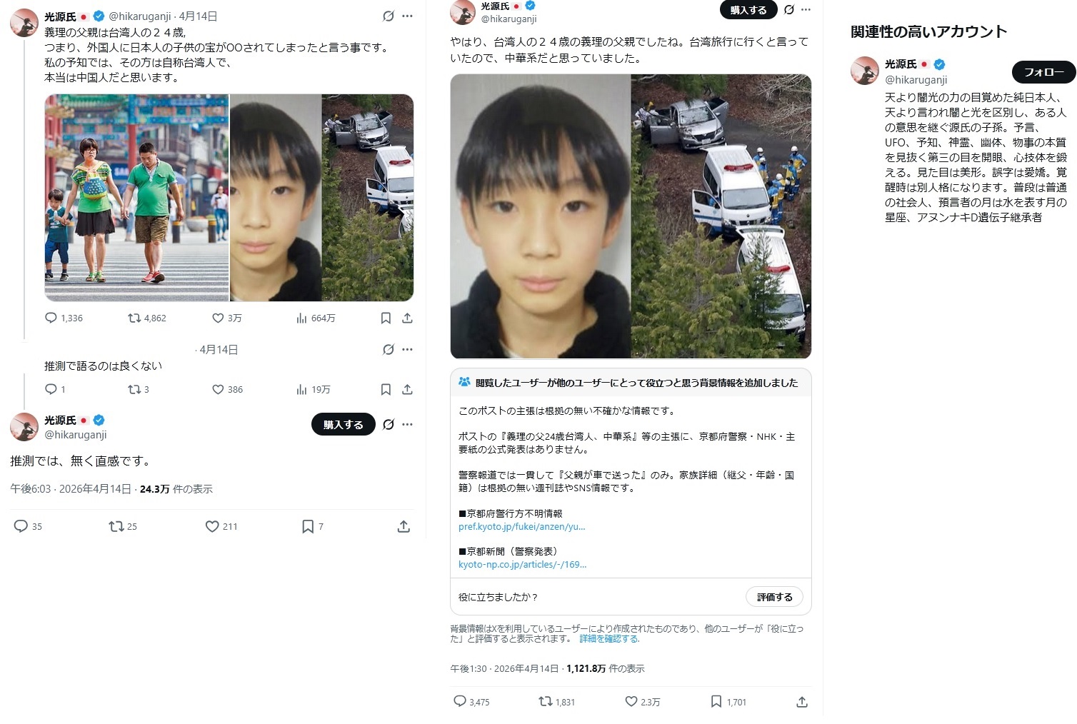 | … | 64無念Nameとしあき26/04/17(金)05:15:51No.1401402013そうだねx2 1776370551815.jpg-(14530 B) >犯人が中国人扱いされてそんなに悔しかったの? |
