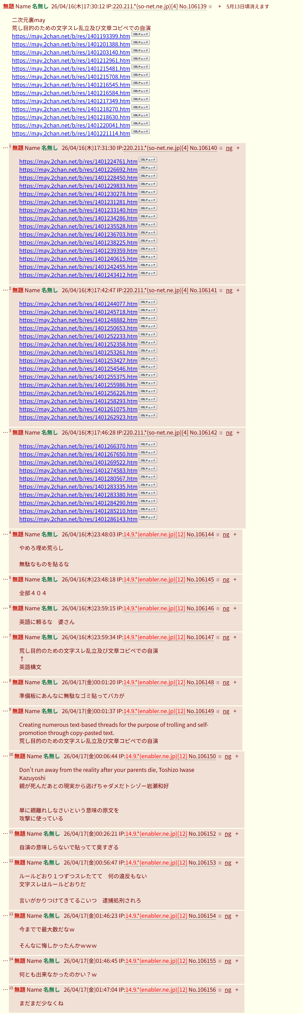 | … | 3無念Nameとしあき26/04/17(金)02:19:30 ID:8R7YXfKgNo.1401395911+削除依頼によって隔離されました |