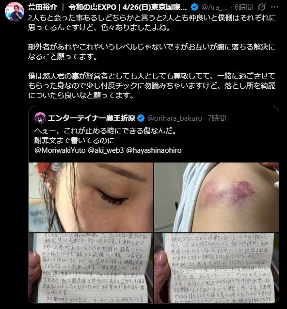 女性のための社会を作ると豪語していた令和の虎のロン毛の社長が女性に暴力スレ削除された記事が2件あります.見る