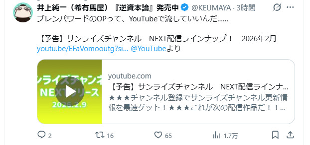 | … | 22無念Nameとしあき26/04/17(金)07:38:00No.1401409830そうだねx2この前AT-Xの一挙放送で観たけど |
