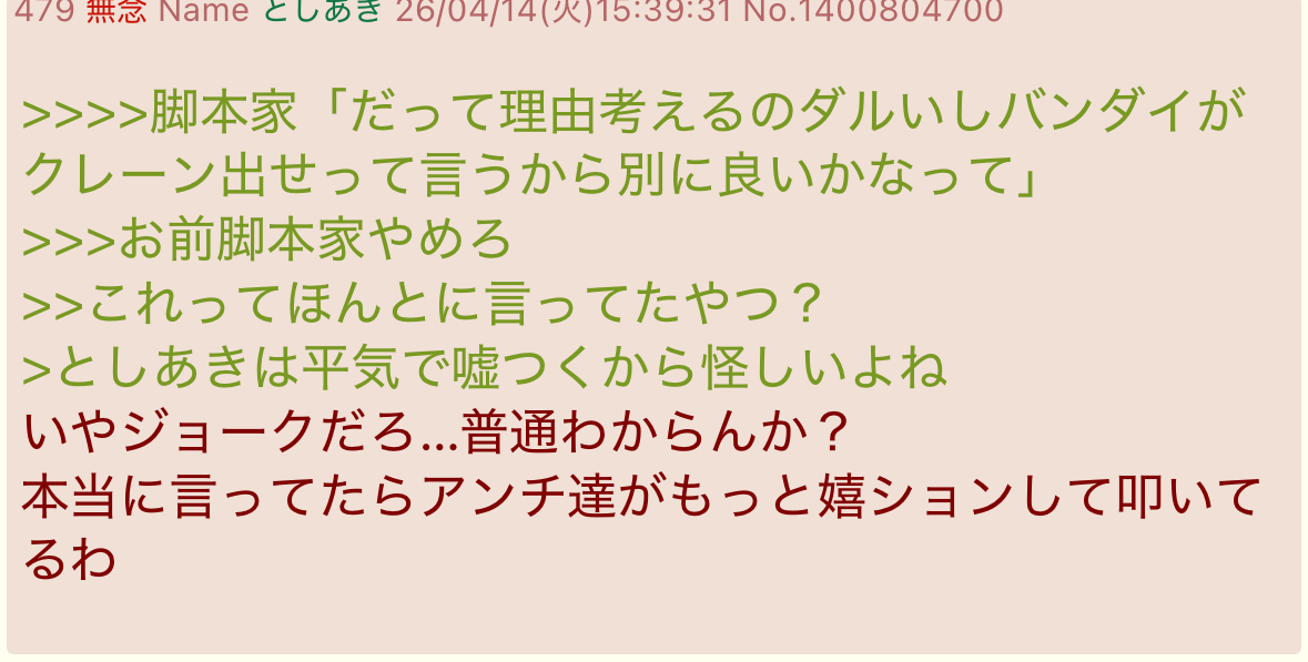 | … | 658無念Nameとしあき26/04/17(金)14:14:26No.1401464201+子供向け特撮番組叩きで群れることで |