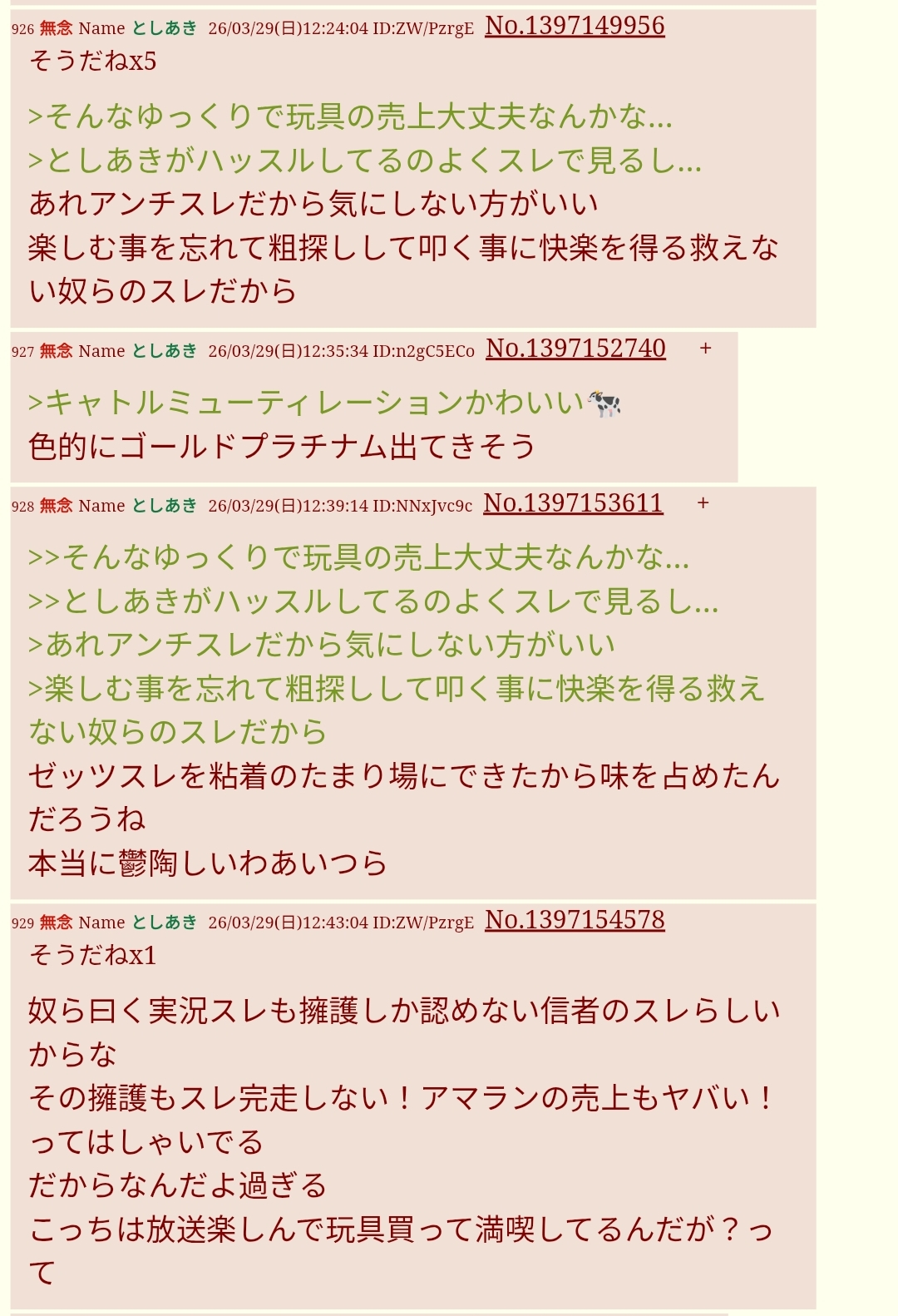 | … | 631無念Nameとしあき26/04/17(金)13:59:25No.1401462241+「今の東映は子供を第一に考えてない!!ネットのエモバズ狙い!!」などと |