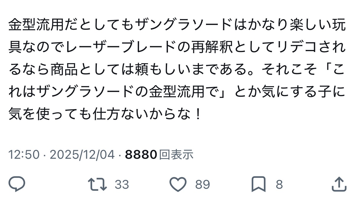 | … | 642無念Nameとしあき26/04/17(金)14:03:47No.1401462817+レーザーブレードすらないし |