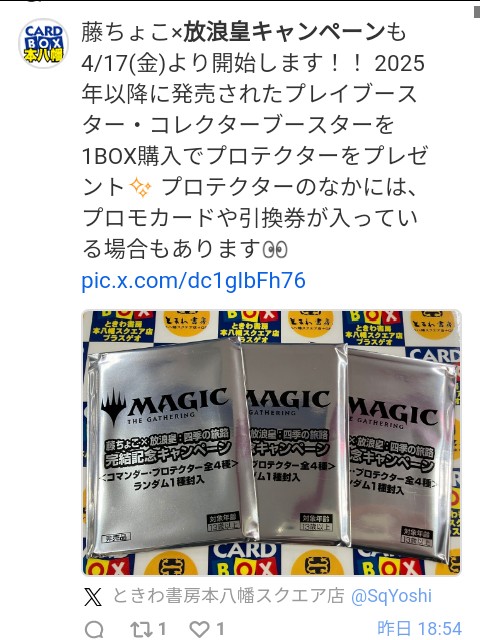 | … | 13無念Nameとしあき26/04/17(金)08:49:17No.1401417511そうだねx1プレブコレブ含めて5箱買ったから放浪皇引くぜ!! |
