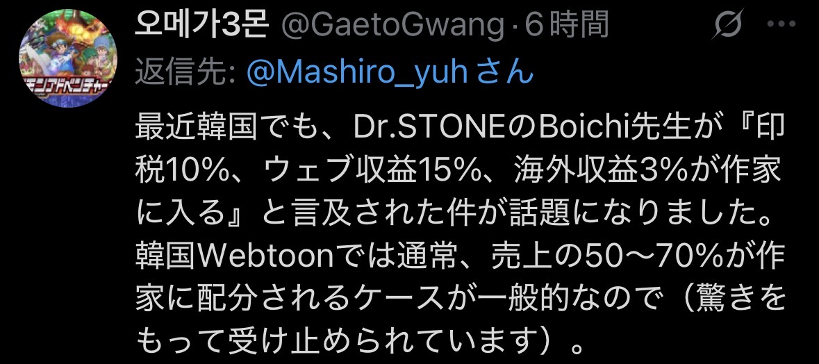 | … | 25無念Nameとしあき26/04/17(金)09:04:00No.1401419185+売上の100%入っても韓国の売上じゃ日本の印税より低いのでは? |