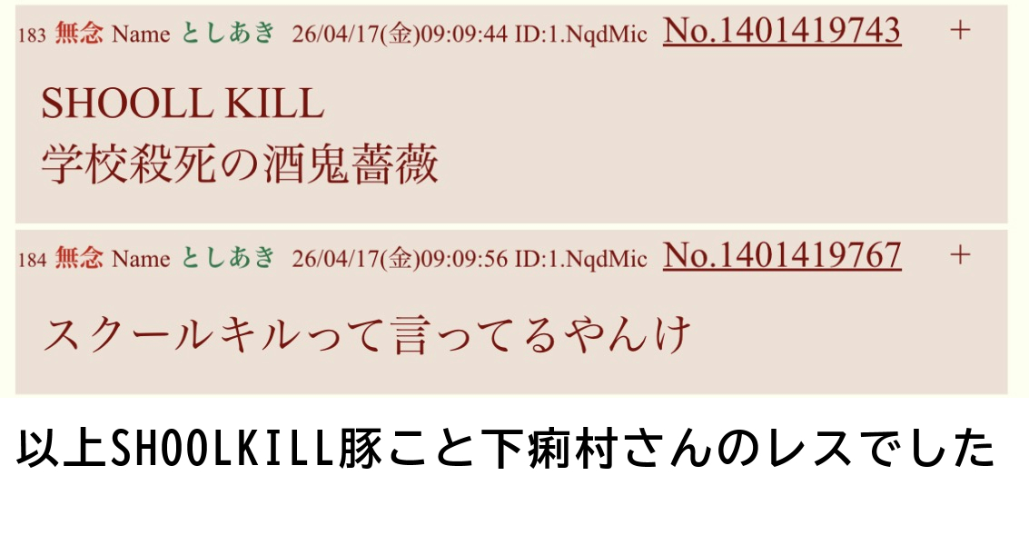 | … | 40無念Nameとしあき26/04/17(金)10:39:55No.1401430108そうだねx1>うんこが泣きわめいてるw |