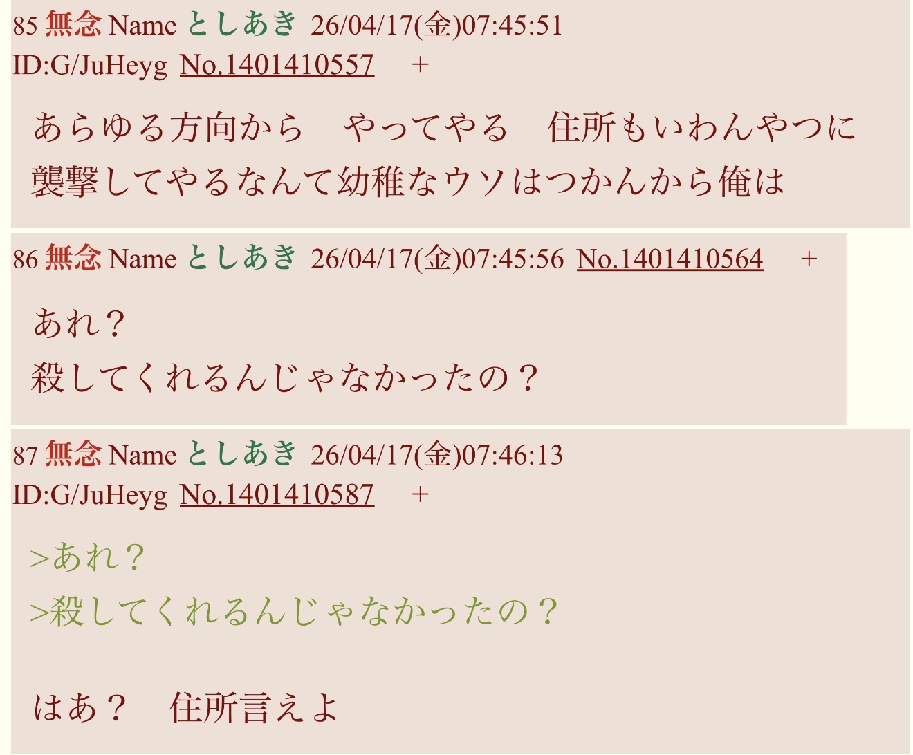 | … | 2無念Nameとしあき26/04/17(金)10:29:36 ID:dgjyYB0sNo.1401428729+なんでIDが怖いのか |