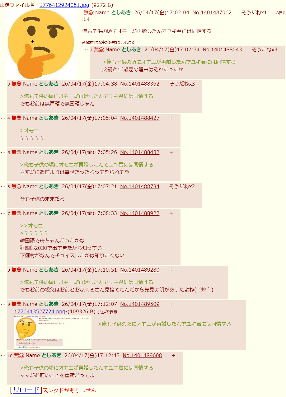 | … | 65無念Nameとしあき26/04/17(金)17:21:39No.1401491105そうだねx2>1776413199010.jpg |