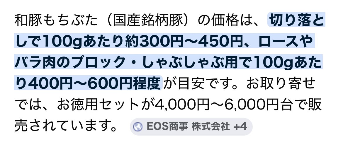 | … | 131無念Nameとしあき26/04/17(金)21:48:34 ID:Iw6hEyQgNo.1401558399そうだねx1>>>言っとくが豚は100g500円でもかなり高い方だぞ? |