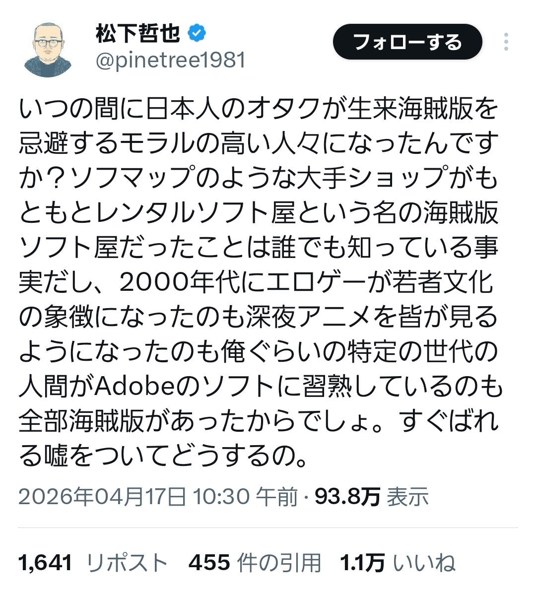| … | 9無念Nameとしあき26/04/18(土)02:49:07No.1401613007+https://x.com/pinetree1981/status/2045008979559100762 |