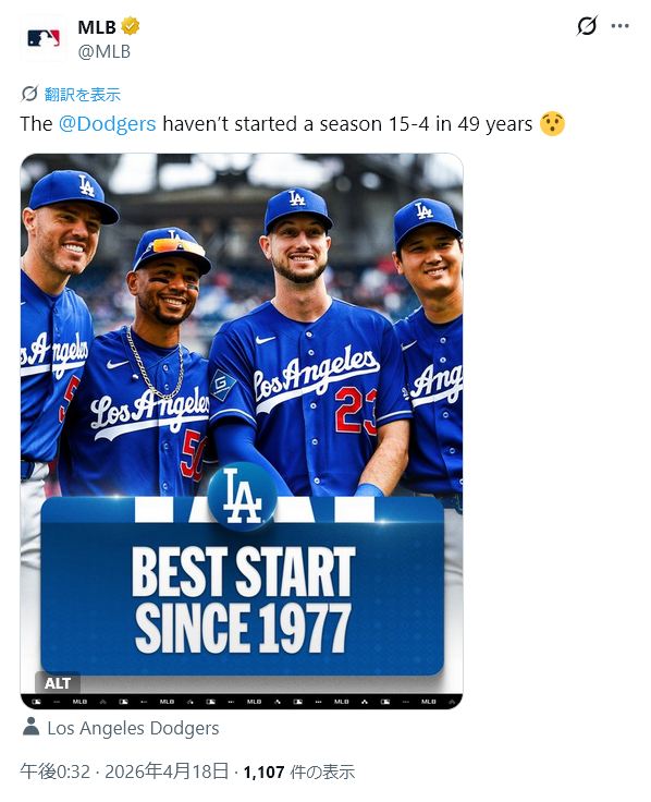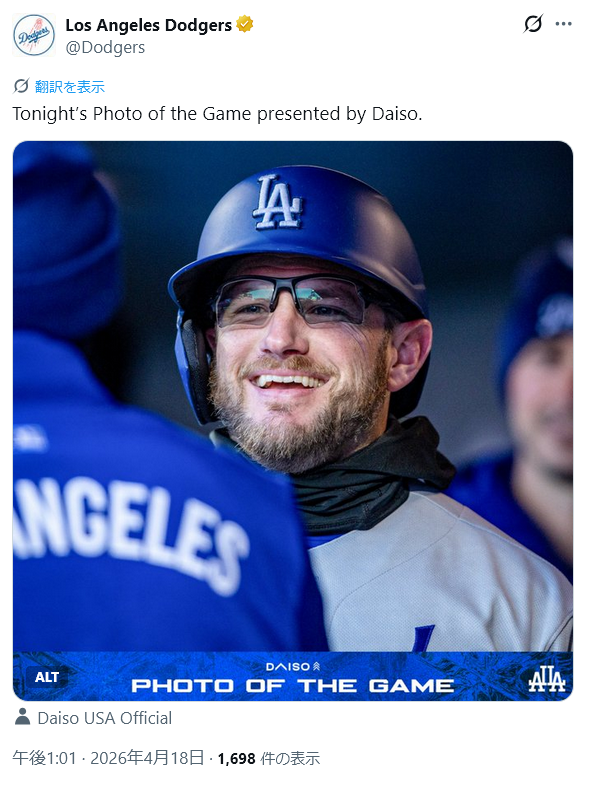 | … | 927無念Nameとしあき26/04/18(土)12:59:34 IP:125.198.*(mesh.ad.jp)No.1401680608そうだねx1ドジャースが史上“最寒”試合に快勝で4連勝 |