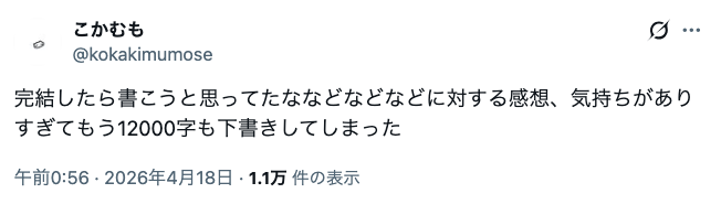| … | 15無念Nameとしあき26/04/18(土)21:34:50No.1401802095+>原稿用紙30枚・・・小説かな? |