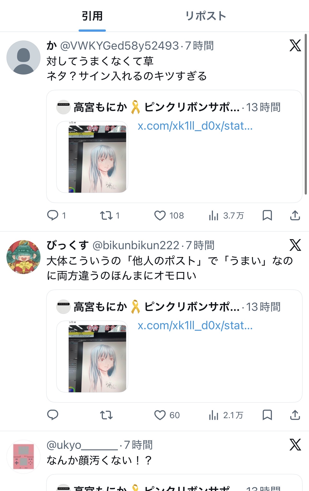 | … | 76無念Nameとしあき26/04/18(土)23:07:58No.1401830672そうだねx1>>Xの連中は配慮がなさすぎる |