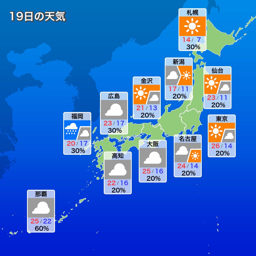 | … | 5無念Nameとしあき26/04/19(日)06:31:57No.1401876264+ 1776547917845.jpg-(108189 B) 19日(日)は移動性の高気圧に覆われる北日本や東日本は晴れて行楽日和になりますぽん |