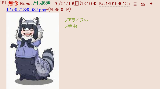 | … | 35無念Nameとしあき26/04/19(日)13:19:16No.1401948097+ 1776572356620.png-(74181 B) アライさんを捕食しちゃうよー |