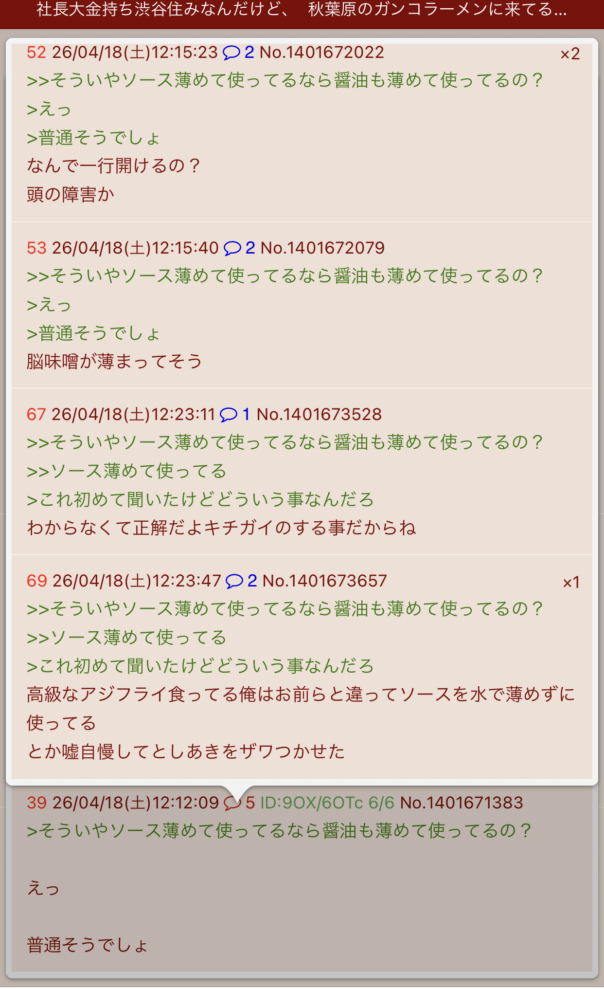 | … | 93無念Nameとしあき26/04/19(日)19:22:22No.1402036334そうだねx4>ソースがお湯で薄めてない |