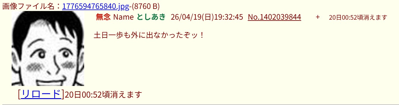 | … | 191無念Nameとしあき26/04/19(日)19:51:17No.1402045868そうだねx3>1776595640752.jpg |