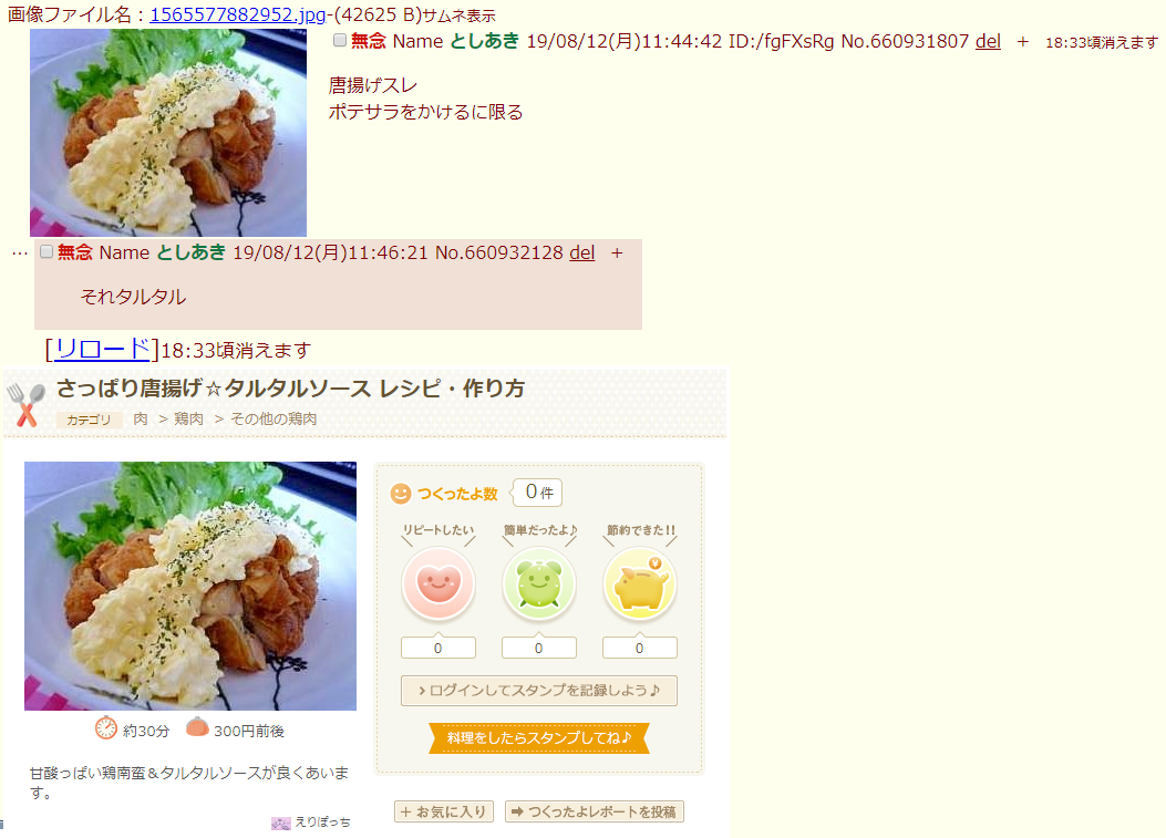 | … | 202無念Nameとしあき26/04/19(日)19:58:44No.1402048414そうだねx1>画像を見ればタルタルソースってくらいわかるだろう… |