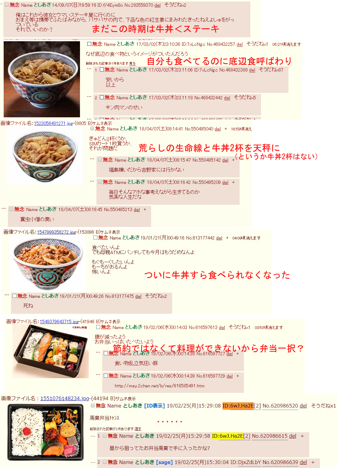 | … | 90無念Nameとしあき26/04/19(日)19:21:20No.1402036025そうだねx6じゃあ今からスレ豚が食えない牛丼食いに行ってくるわ |