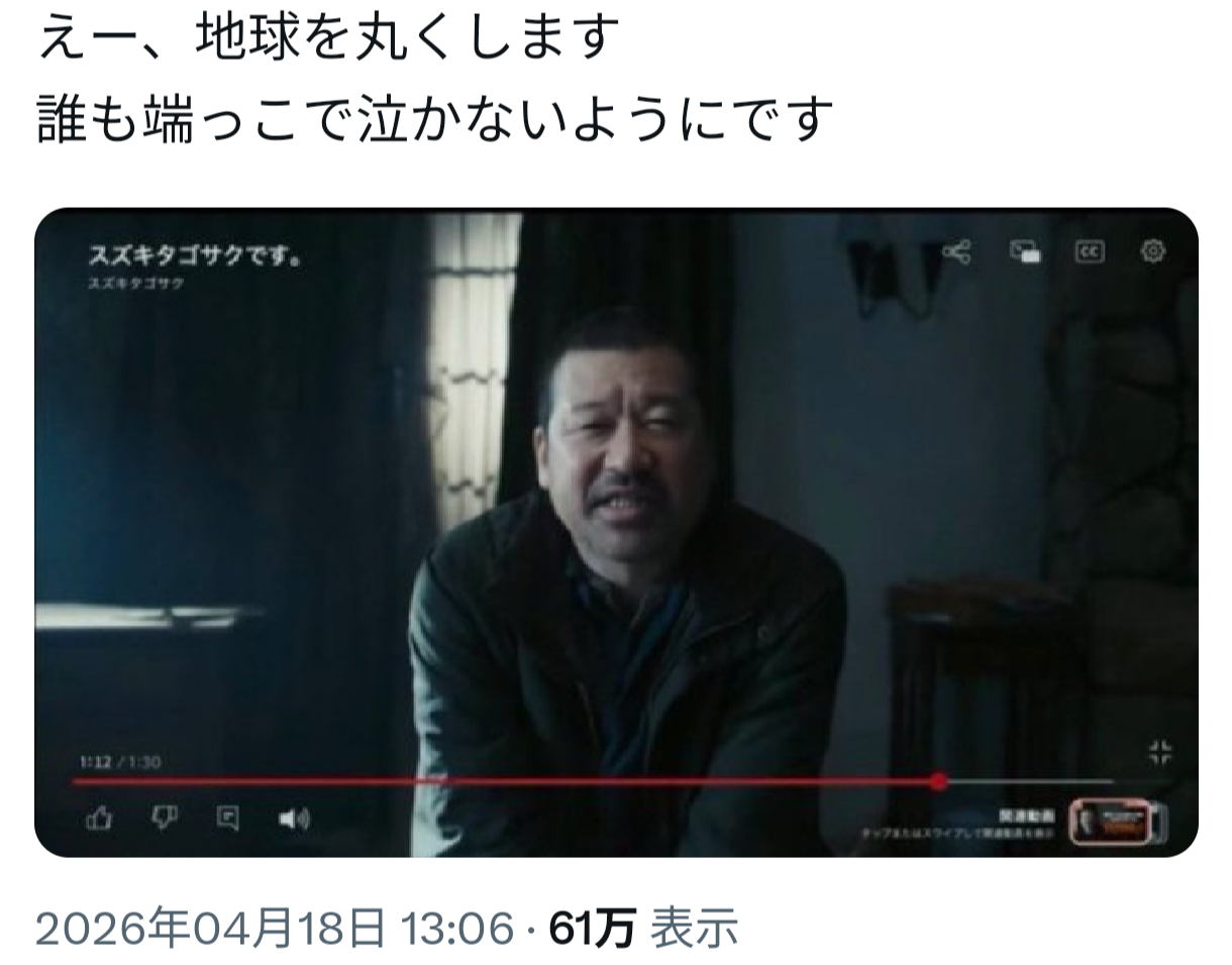 | … | 13無念Nameとしあき26/04/19(日)19:25:34No.1402037407そうだねx1 1776594334162.mp4-(1872581 B) >ムチャクチャな役 |
