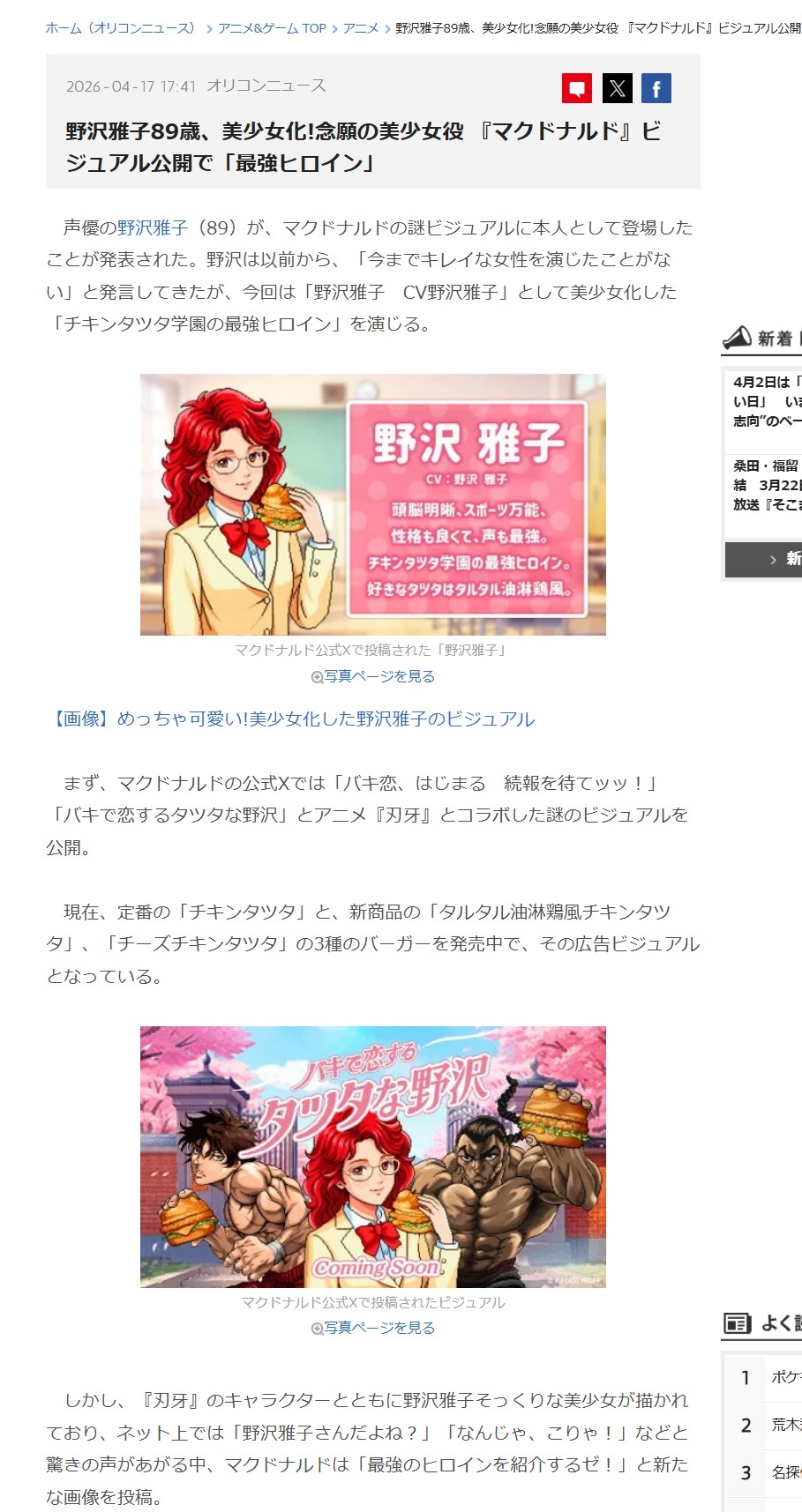 刃牙とチキンタツタ®35周年を記念して、