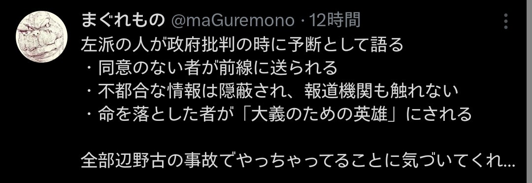| … | 930無念Nameとしあき26/04/20(月)13:48:32No.1402203159+左翼が日頃批判してる事を全て完璧に自分らがやっちゃってるんだよね界隈全体で |