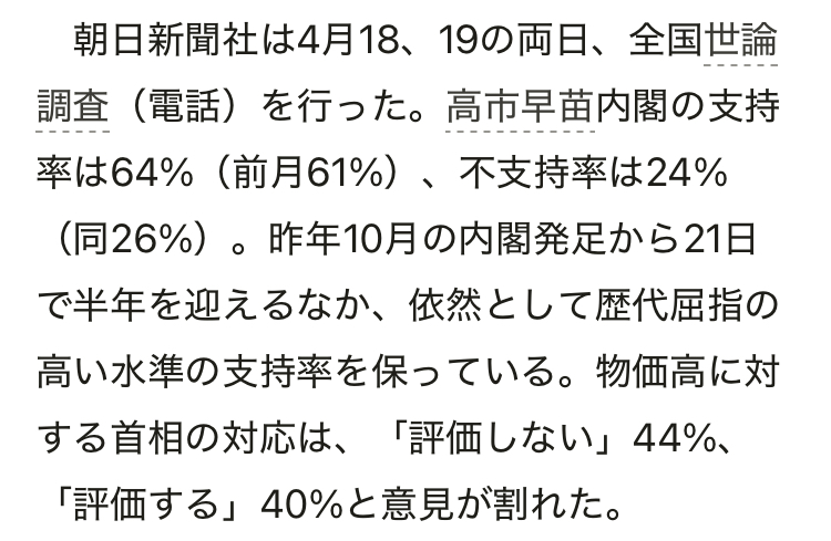 | … | 44無念Nameとしあき26/04/20(月)08:59:39No.1402160029+>近年50%超えてる政権があっただろうか |