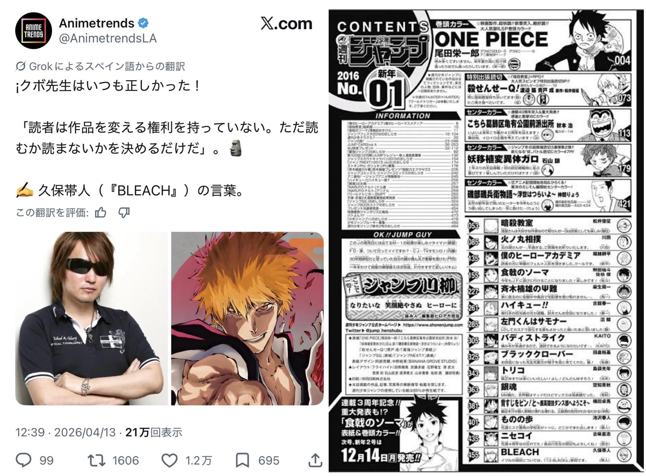 | … | 6無念Nameとしあき26/04/20(月)19:57:47No.1402276047+BLEACHは読みやすいから情状酌量の余地あり |