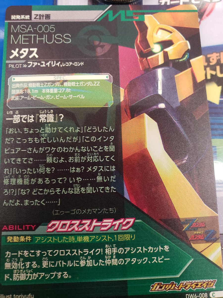 | … | 1無念Nameとしあき26/04/20(月)22:54:50No.1402321673+アナハイム社がZ計画の一環で開発したエゥーゴ初の可変MS(TMS)試作機であり、Zガンダム開発に向けた変形機構の検証用として誕生した。 |