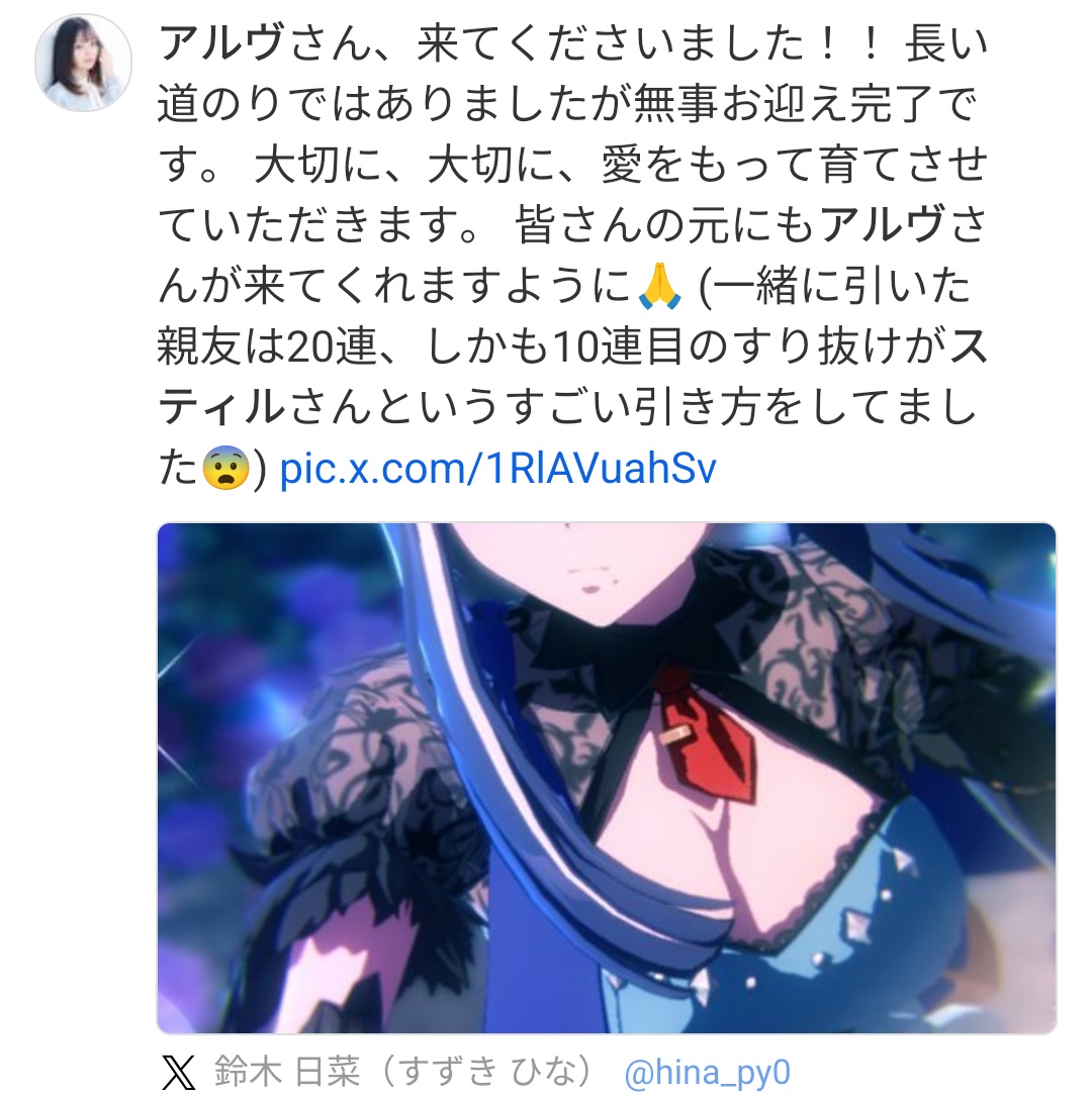 | … | 29無念Nameとしあき26/04/21(火)13:55:54No.1402421206そうだねx1 1776747354139.jpg-(252733 B) 中の人も無事引けた模様 |