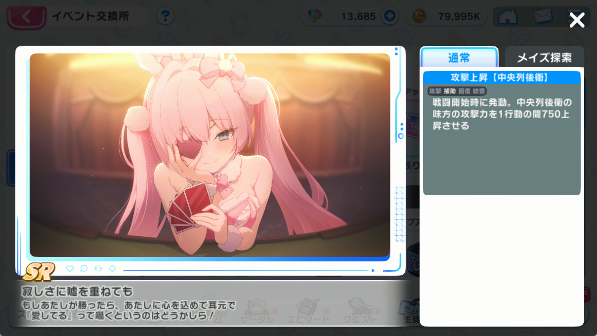 | … | 85無念Nameとしあき26/04/21(火)17:59:21 ID:zLNPctL6No.1402456607+前のアンケにバニーカオスメイデンくれとは書いたけど実装が早すぎるぽよ |