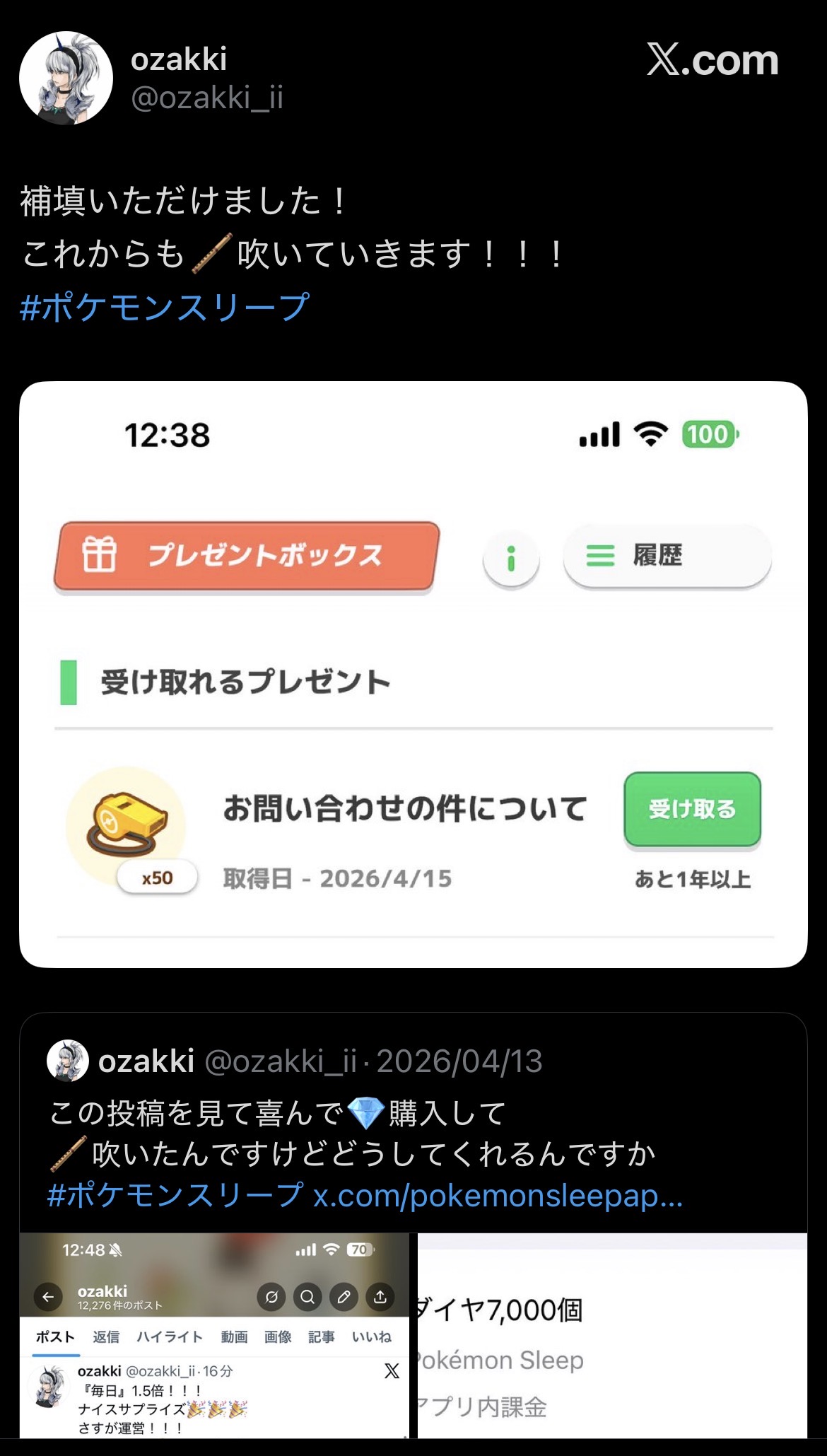 | … | 2無念Nameとしあき26/04/22(水)05:10:42No.1402571007+ 1776802242596.jpg-(47689 B) https://www.pokemonsleep.net/news/333730373236393633383034383937323831/ |