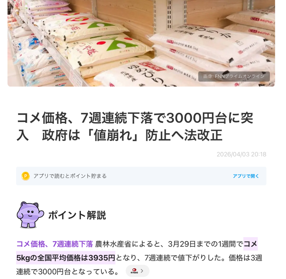 | … | 45無念Nameとしあき26/04/22(水)12:48:51No.1402619720そうだねx1次のコメを農家から買えばいいのよ |