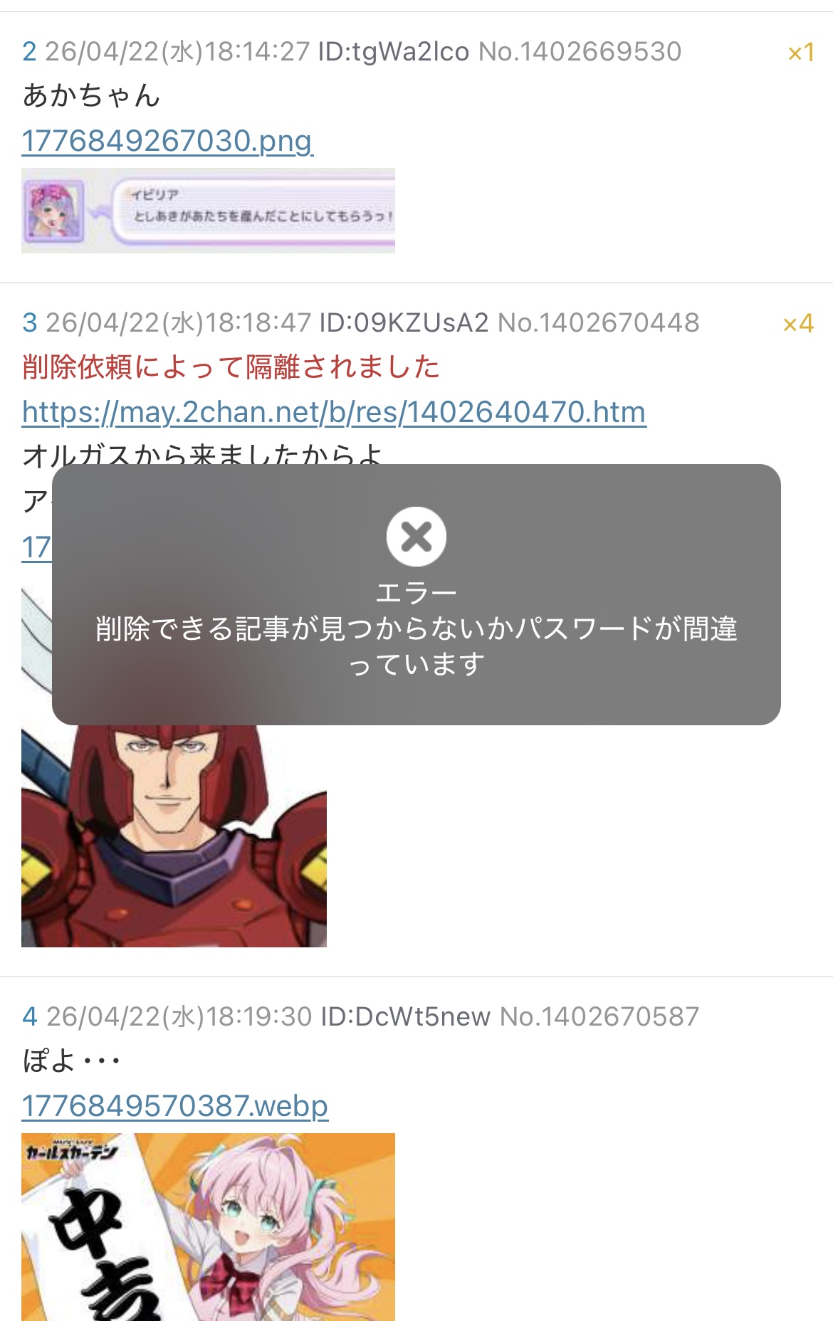 マイナゲスレ削除された記事が3件あります.見る