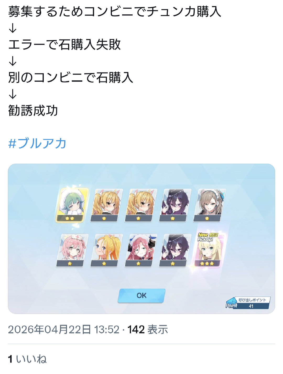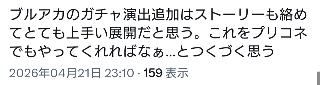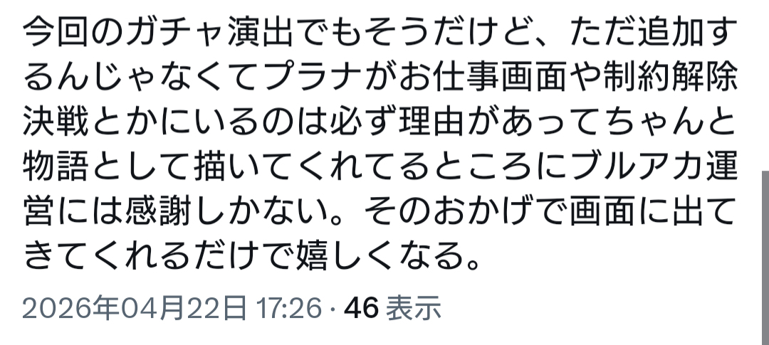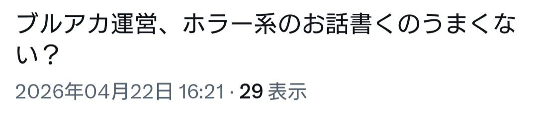 | … | 459無念Nameとしあき26/04/22(水)19:40:28No.1402691782そうだねx3ヨスタ自体もそうだしブルアカ開発側もそうだけど |