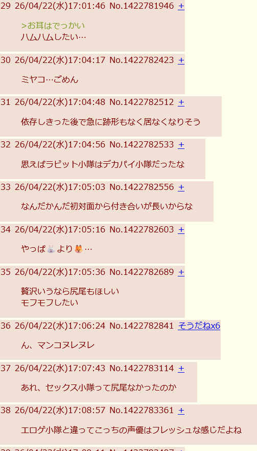 | … | 447無念Nameとしあき26/04/22(水)19:38:31No.1402691247そうだねx1>ぶっちゃけFOX小隊って人気だったの? |