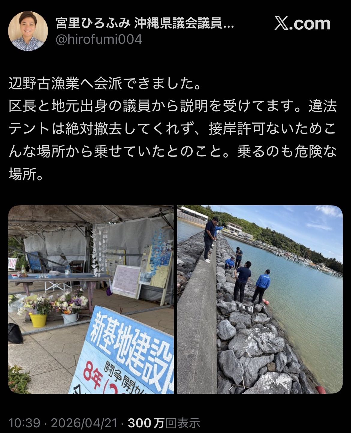 | … | 960無念Nameとしあき26/04/24(金)10:02:16No.1403006843そうだねx1 1776992536526.png-(1096103 B) 規則違反を承知の上で反基地の違法行為を実況した警備員は社会的に殺された模様 |