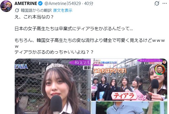 | … | 16無念Nameとしあき26/04/24(金)09:34:03No.1403003661+ 1776990843538.jpg-(56530 B) 韓国人から見た日本の女子高生の謎 |