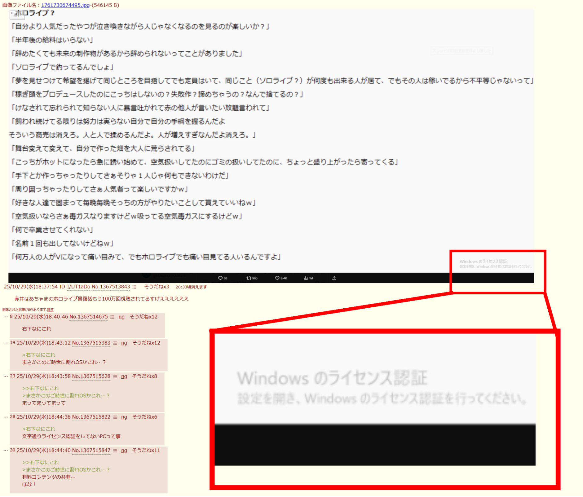 | … | 228無念Nameとしあき26/04/24(金)15:09:42No.1403051493そうだねx2>ホロ信もにじ信も自分の所の都合のいい部分しか見ないし相手の都合悪い部分しか見えないだけで正直大差無い |