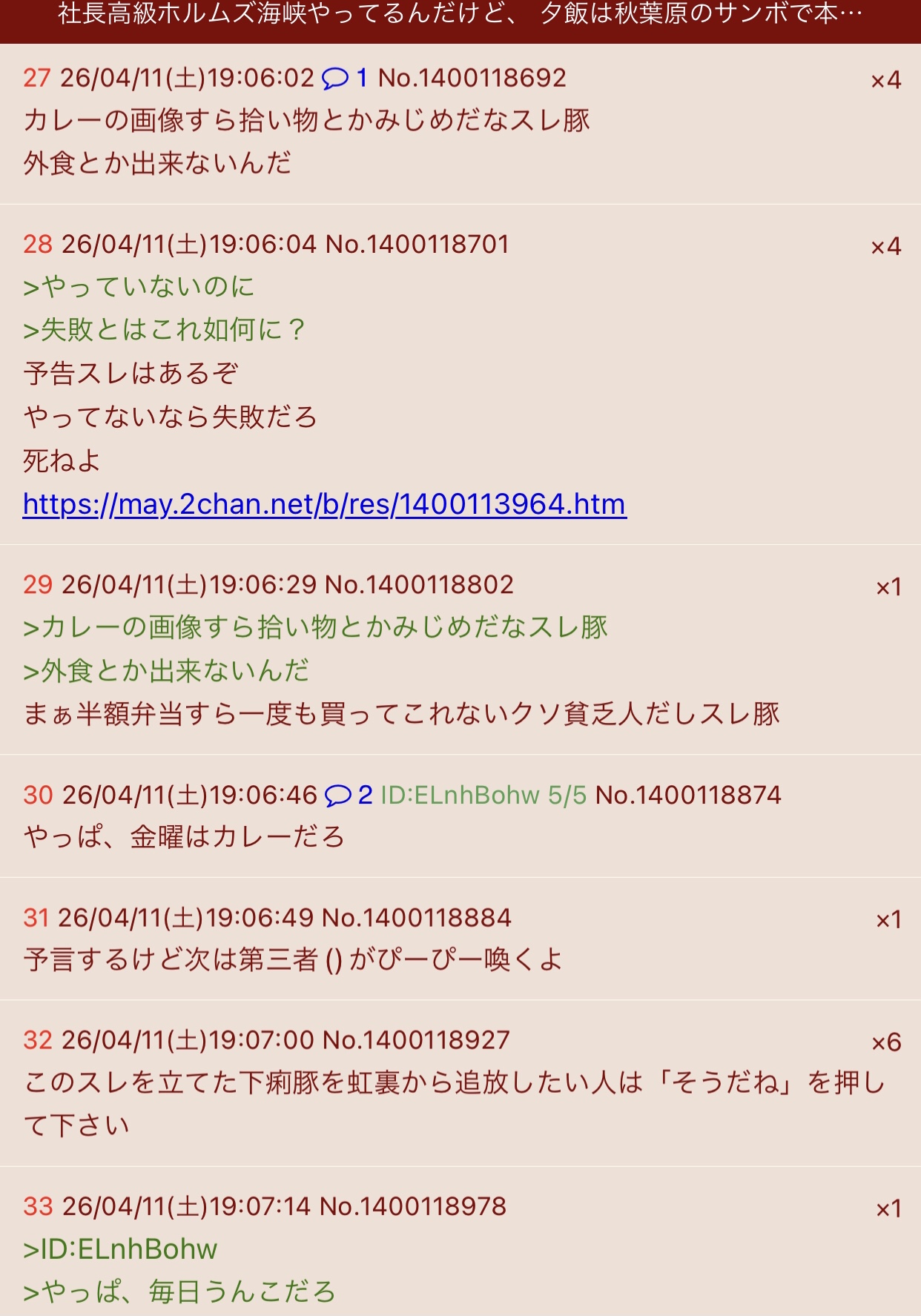 | … | 34無念Nameとしあき26/04/24(金)22:17:03No.1403143344+どんどん苦しめー |